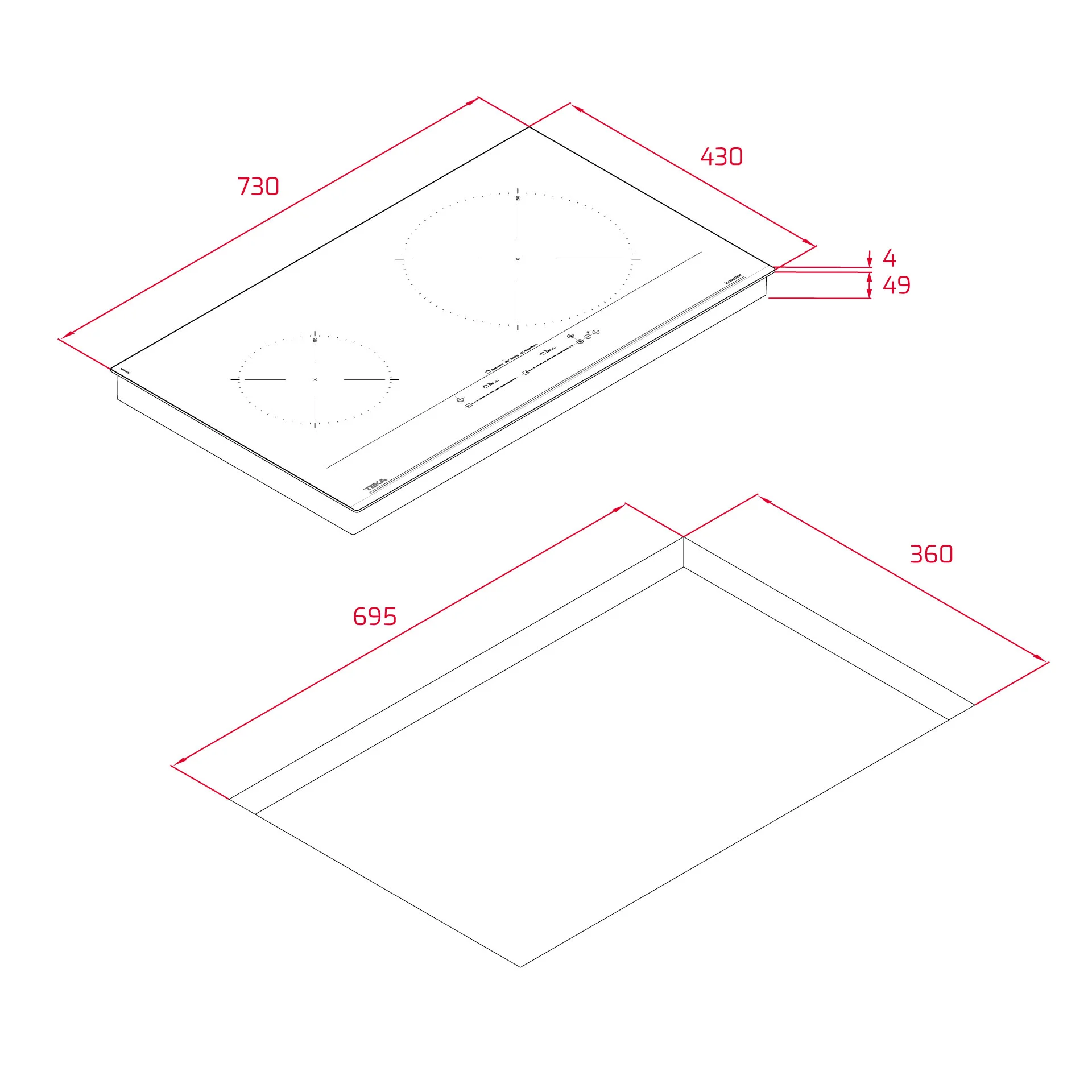 - Bếp từ Teka có bảng điều khiển cảm ứng trượt riêng biệt với 9 mức gia nhiệt.