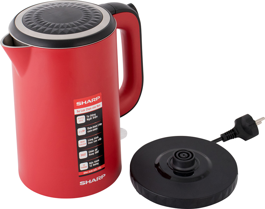 Bình đun siêu tốc Sharp EKJ-17EVPS-RD (1.7L) sở hữu thiết kế vỏ ngoài 2 lớp với bên trong bằng thép không gỉ - chống thôi nhiễm các chất có hại và lớp bên ngoài bằng nhựa - giúp hạn chế nóng bề mặt. Cùng dung tích 1,7L phù hợp sử dụng trong gia đình, chỉ mất từ 2-5 phút bạn đã có ngay nước sôi để pha cà phê, úp mì hay nấu ăn. Thiết kế tối ưu tiện dụng như đế xoay 360 độ, dây quấn gọn và nắp bật lò xo đều sẽ hỗ trợ tối đa cho bạn trong quá trình sử dụng.