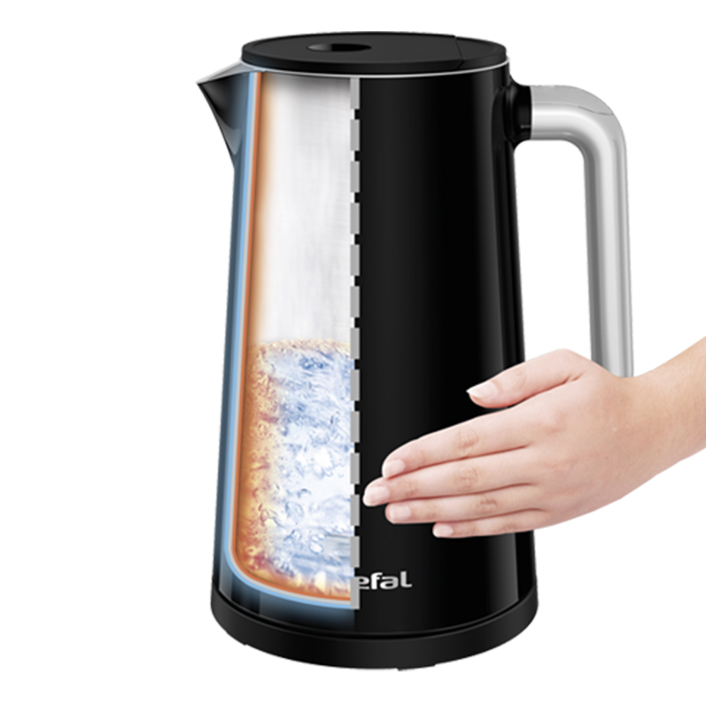 Lớp vỏ ngoài là lớp kim loại có phủ cách nhiệt, bên trong thân bình và ruột bình được làm bằng thép không gỉ, đảm bảo an toàn cho người sử dụng và tăng độ bền của ấm siêu tốc.