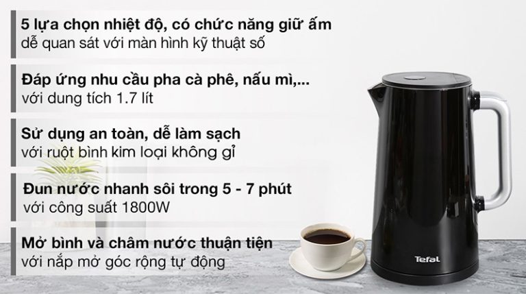 Ấm đun nước siêu tốc Tefal có thiết kế hiện đại với màu sắc sang trọng: