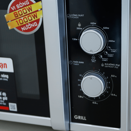 Công suất vi sóng 800W, nướng 1000W, đáp ứng việc hâm nóng và nướng