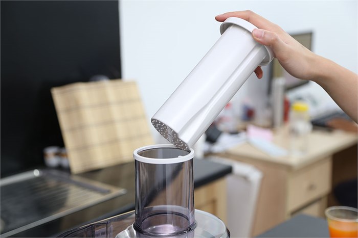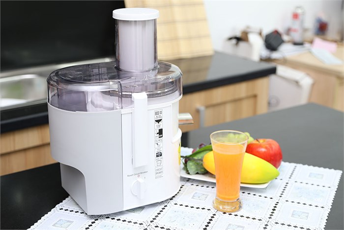 Máy ép trái cây thiết kế màu trắng hiện đại, ép trái cây nhanh chóng, dễ dùng.