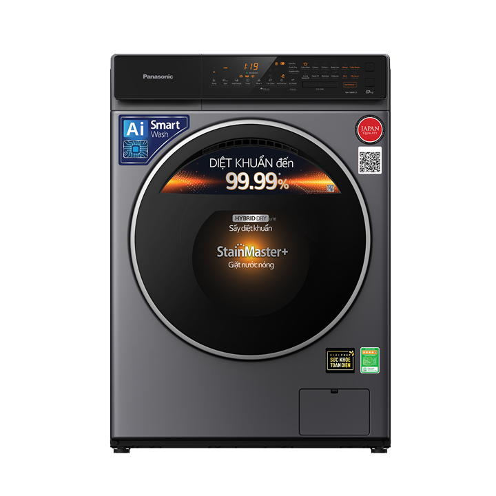 Máy giặt Panasonic NA-V10FC1LVT 10/2kg có công nghệ giặt nước nóng StainMaster+ loại bỏ hiệu quả các loại vết bẩn, mạt bụi và 99,99% vi khuẩn trên vải với nhiệt độ nước nóng lý tưởng từ 40°C đến 90°C.