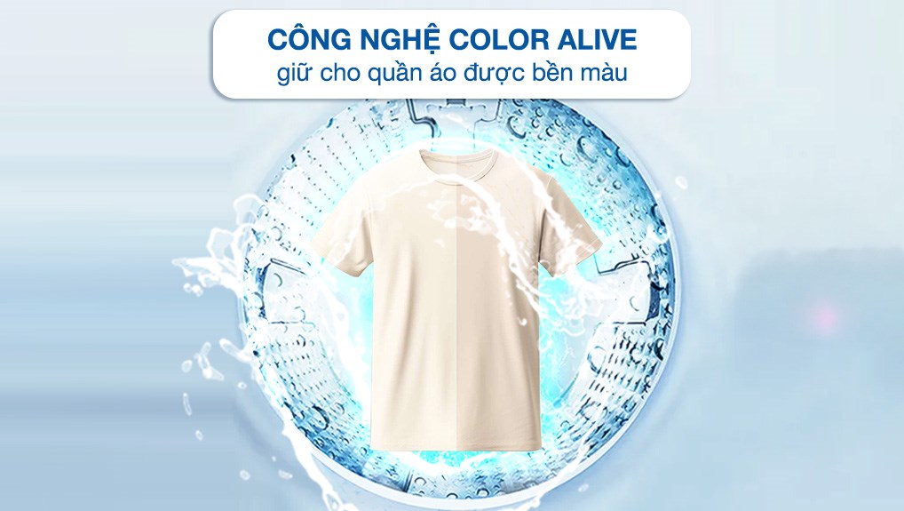 - Color Alive hạn chế tình trạng gây biến dạng sợi vải nhờ hệ thống giặt được thiết kế có khả năng giặt sạch tối ưu, từ đó giúp bảo vệ quần áo, giữ được độ bền màu được tốt hơn.