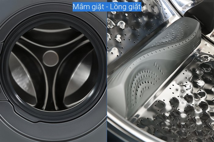 - Lồng giặt bằng thép không gỉ bền bỉ, chống ăn mòn và tình trạng oxy hóa, hạn chế cặn bẩn bám vào giúp lồng giặt, luôn giữ được sự sáng bóng, giặt sạch quần áo hiệu quả hơn.