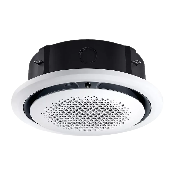 - Máy lạnh âm trần 360 độ Samsung Inverter 4 HP AC100TN4PKC/EA có kiểu thiết kế hình tròn đột phá hoàn toàn mới với chất liệu vỏ máy cứng cáp và sở hữu gam màu trắng tinh tế, góp phần tạo nên điểm nhấn thẩm mỹ đẳng cấp cho không gian sống, làm việc và kinh doanh của bạn.