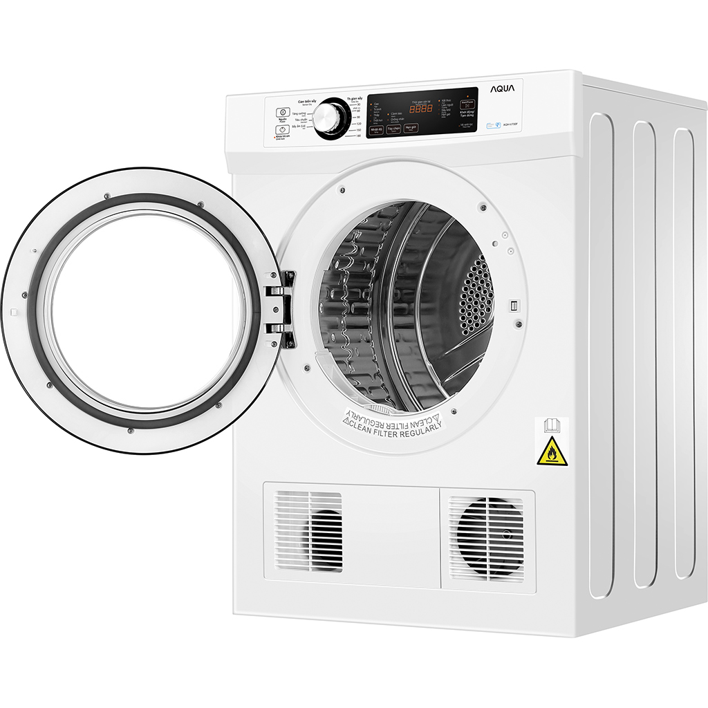 Máy sấy quần áo Aqua tích hợp cảm biến sấy thông minh có khả năng nhận biết hơi ẩm từ quần áo, sau đó điều chỉnh nhiệt độ ở mức phù hợp, giúp trang phục được sấy khô hoàn hảo, tiết kiệm cả thời gian lẫn điện năng