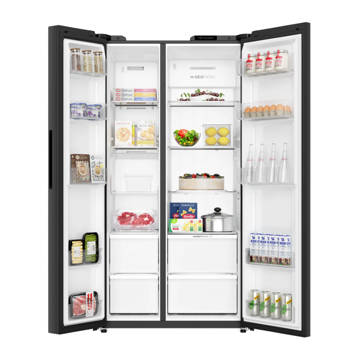 Tủ Lạnh Aqua Inverter 569 Lít AQR-S633XA(SL) nổi bật với kiểu dáng 2 cánh đối xứng kèm thiết kế vân nhám độc đáo, mang lại vẻ ngoài tinh tế và đẳng cấp. Kiểu dáng Side by Side không chỉ tối ưu hóa không gian lưu trữ mà còn tạo điểm nhấn thẩm mỹ cho không gian bếp hiện đại.